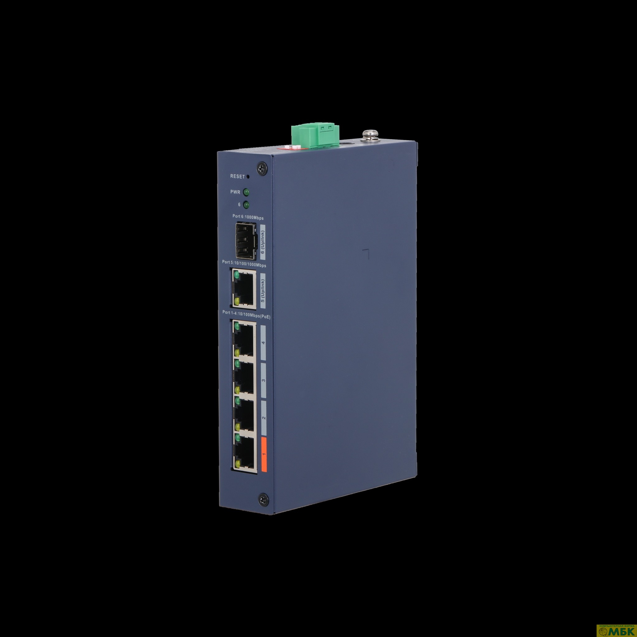 DAHUA DH-CHS4106-4ET-60 4-портовый PoE коммутатор управляемый 4 RJ45 10/100Мбит/с (PoE/PoE+/Hi-PoE), 1 RJ45 10/100/1000Мбит/с (uplink), 1 SFP 1000Мбит/с (uplink); IP30, IK06; монтаж на DIN-рейку