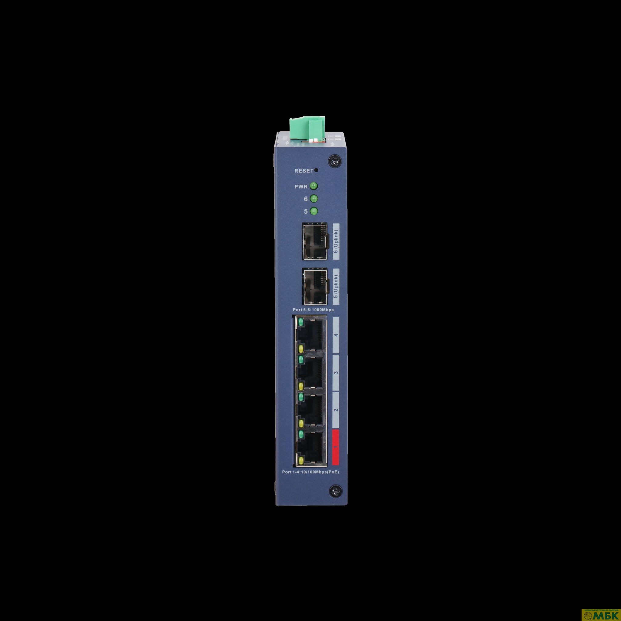 DAHUA DH-CHS4206-4ET-90 4-портовый PoE коммутатор урпавляемый 4 RJ45 10/100Мбит/с (PoE/PoE+/Hi-PoE), 2 SFP 1000Мбит/с (uplink); PoE: порт 1 до 90Вт IP30, IK06; монтаж на DIN-рейку