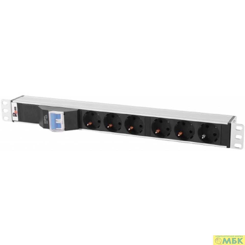 REM Блок розеток Rem-32 с авт., 6 Schuko, 32А, алюм., 19", колодка (R-32-6S-A-440-K)