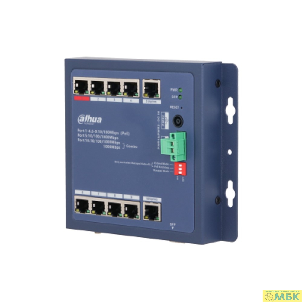 DAHUA DH-CHS4110-8ET-90-F 8-портовый PoE коммутатор управляемый: 8 RJ45 10/100Мбит/с , 1 RJ45 10/100/1000Мбит/с, 1 комбинированный SFP/RJ45 10/100/1000Мбит/с до 90Вт IP30, IK06; плоский