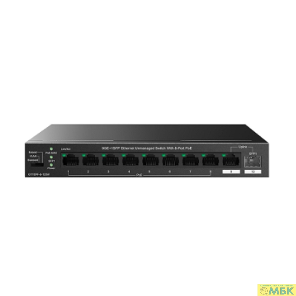 TENDA TEG1110PF-8-120W Коммутатор неуправляемый PoE, 10 портов, 9x1 Гбит/с, SFP 1х1 Гбит/с, PoE 8х30 Вт (до 102 Вт), настольный