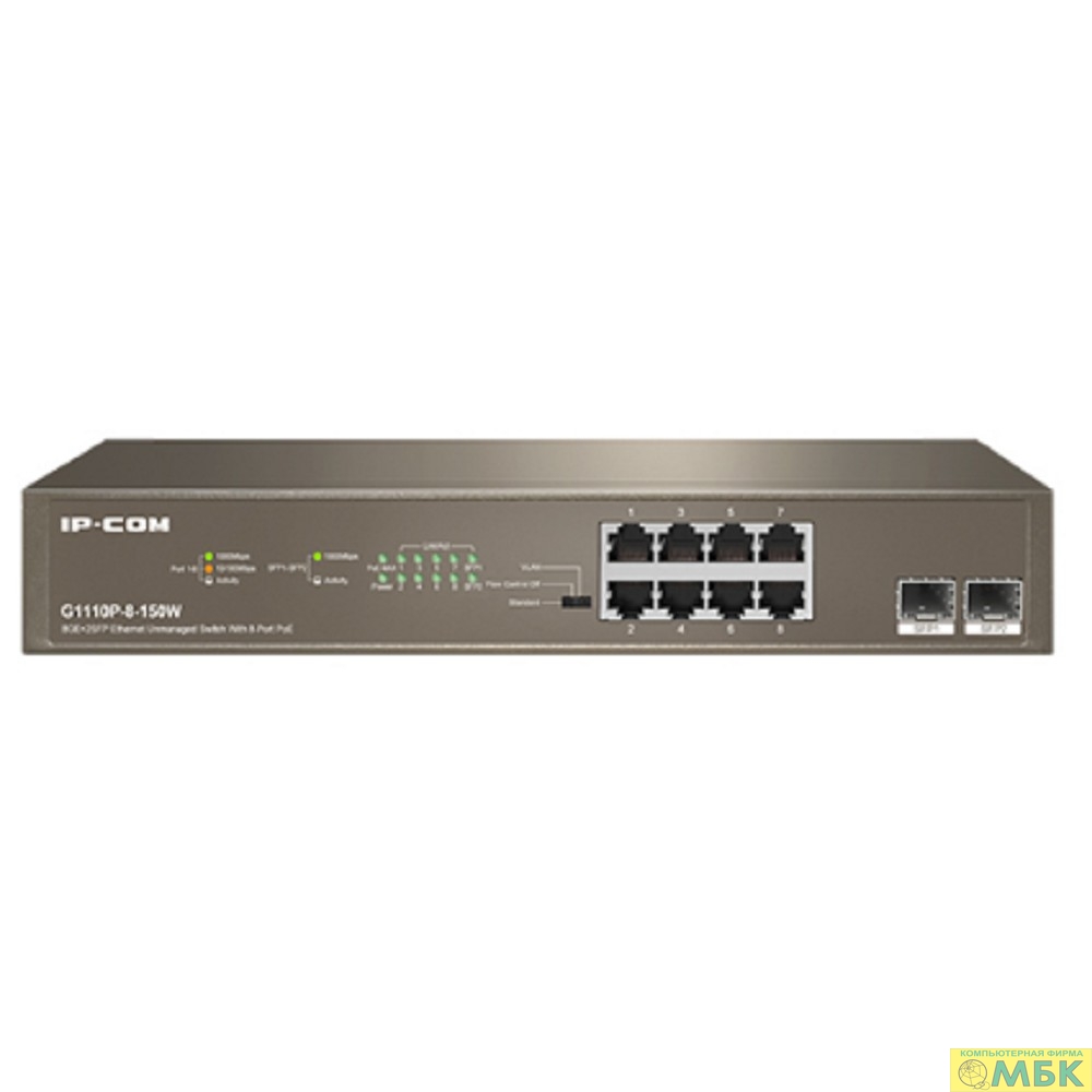 IP-COM G1110P-8-150W Коммутатор PoE неуправляемый 10-Ports 10/100/1000 Base-T + 2-Ports 1000 Base-X SFP / 8-Ports PoE (PoE бюджет 130W)