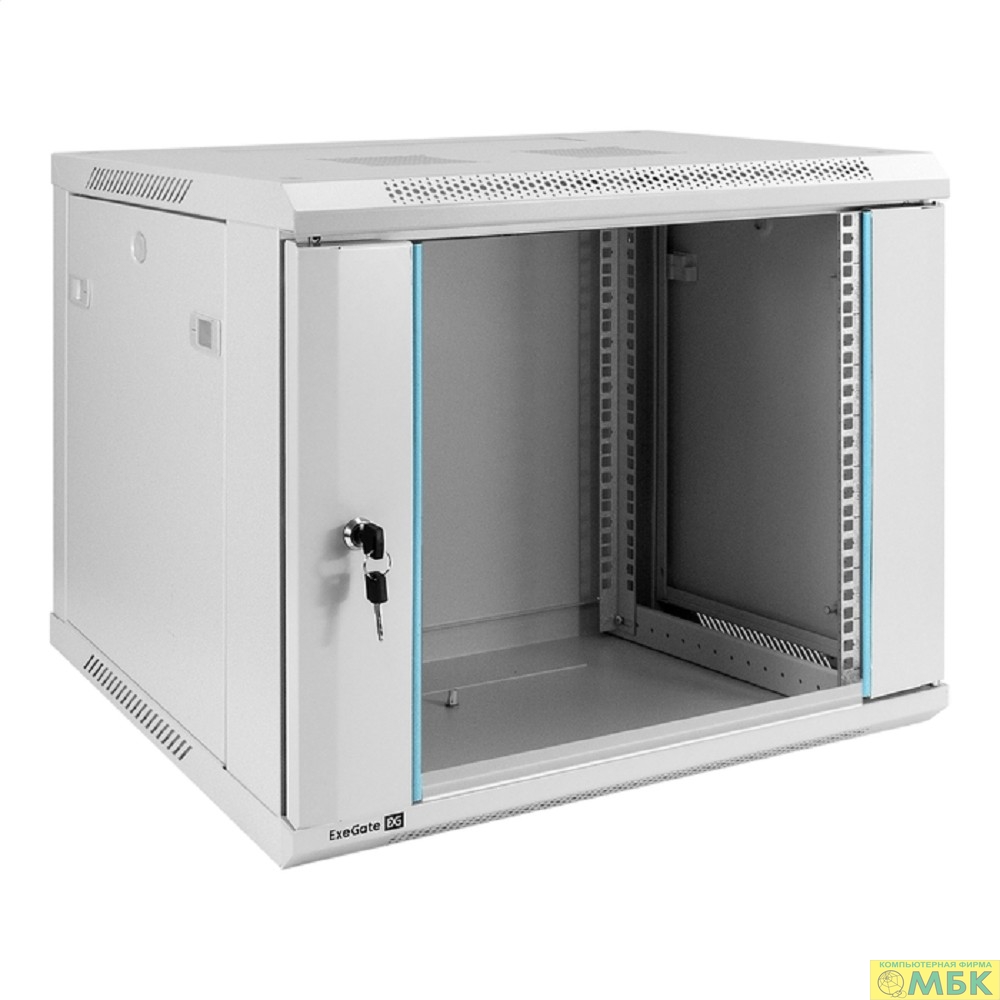 Exegate EX298601RUS Шкаф телекоммуникационный 19" настенный 9U ExeGate EC-WM-9U.450.G.GREY (19”, 9U, 600x450x500mm (ШхГхВ), передняя дверь закаленное стекло, съемные боковые панели, пыле- и влагозащит