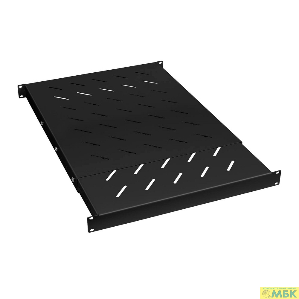 Полка Cabeus SH-J018-SS-600-100KG-BK 19" перфорированная глубиной 600-1000 мм для напольных шкафов и открытых стоек, усиленная до 100кг, цвет черный