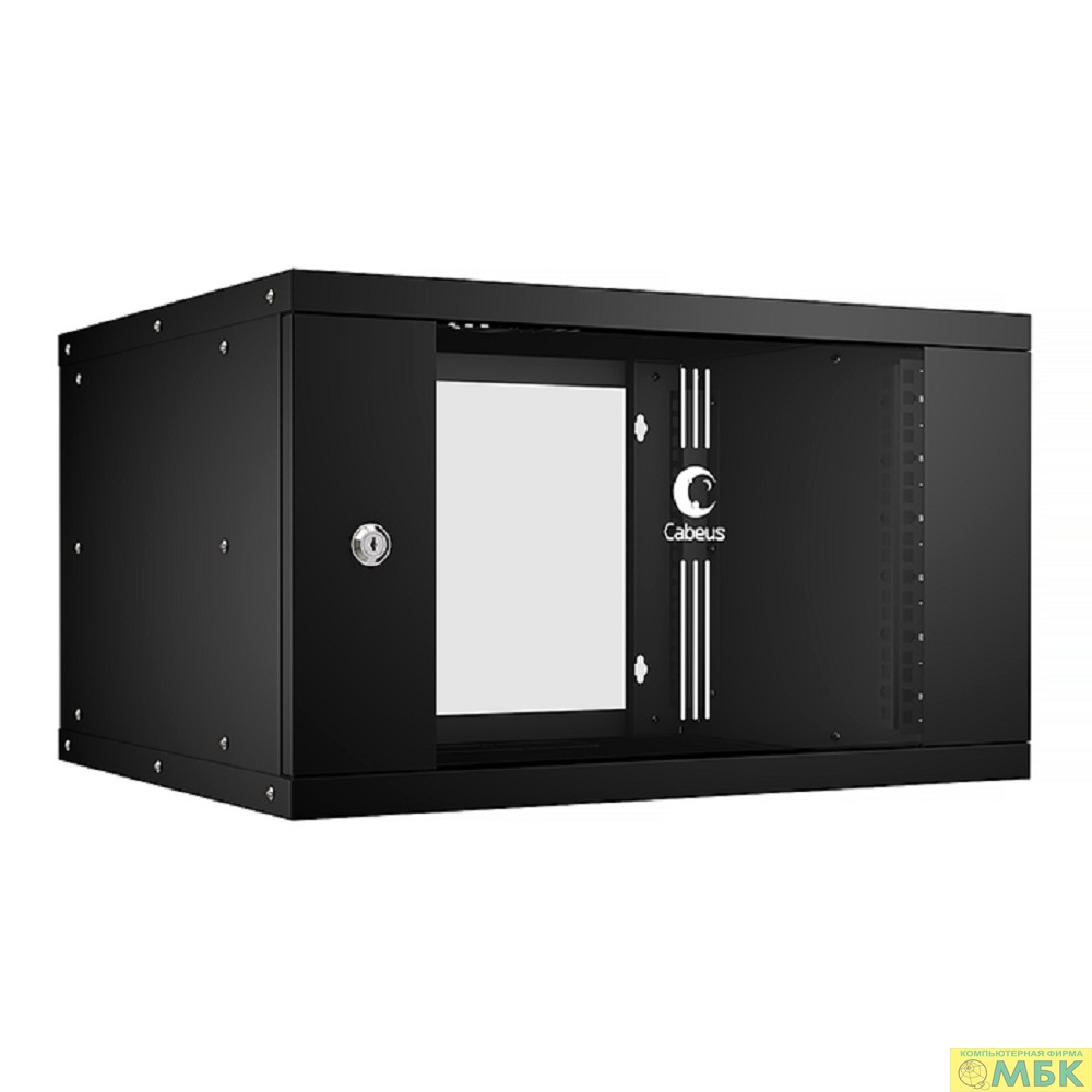 Cabeus WSC-05D-6U55/45-BK Шкаф телекоммуникационный настенный 19" 6U, серия LIGHT разборный, дверь стекло, цвет черный
