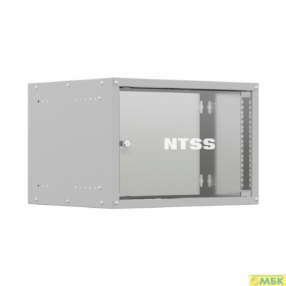 NTSS Шкаф настенный телекоммуникационный NTSS LIME 6U 550х450х370мм, 2 профиля 19, дверь стеклянная, боковые стенки несъемные, разобранный, серый RAL 7035 NTSS-WL6U5545GS (УТ000133113)