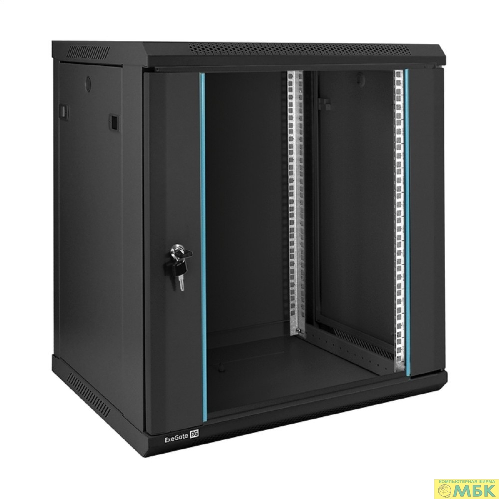 Exegate EX298609RUS Шкаф телекоммуникационный 19" настенный 12U ExeGate EC-WM-12U.450.G.BLACK (19”, 12U, 600x450x635mm (ШхГхВ), передняя дверь закаленное стекло, съемные боковые панели, пыле- и влагоз