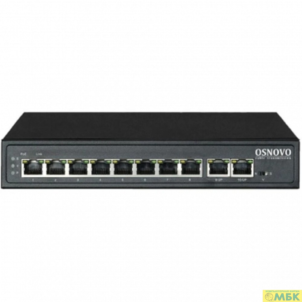 Коммутатор PoE OSNOVO SW-21000(120W) на 10 RJ45 портов, 8 x FE (10/100 Base-T) с поддержкой PoE (IEEE 802.3af/at), 2 x FE (10/100 Base-T). Соответству