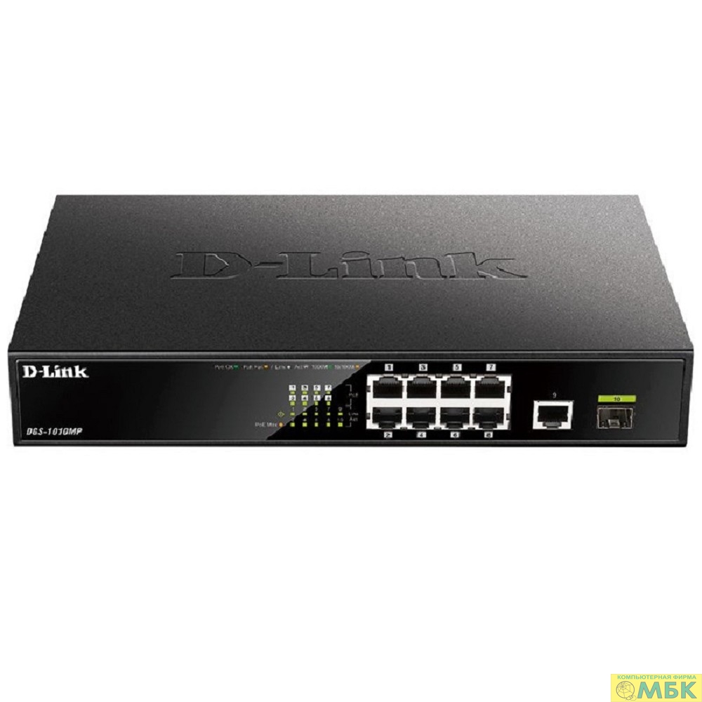 D-Link DGS-1010MP/A1A Неуправляемый коммутатор с 9 портами 10/100/1000Base-T, 1 портом 1000Base-X SFP (8 портов PoE 802.3af/at, PoE-бюджет 125 Вт)