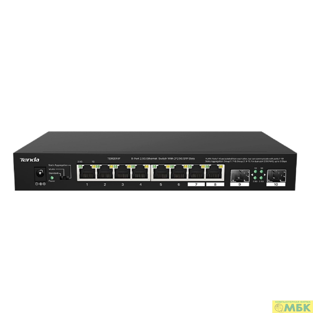 TENDA TEM2010F Коммутатор настольный 8-Ports 100/1000/2500 Mbps Base-TX + 2-Ports 100/1000/2500 Mbps Base-X SFP