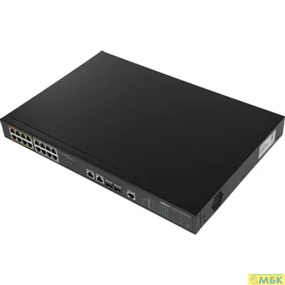 DAHUA DH-LR2218-16ET-240 18-портовый управляемый коммутатор с ePoE, уровень L2, 16xRJ45 100Mb PoE; 2хКомбо SFP/RJ45 1Gb uplink, суммарно 240Вт, коммутация 8.8 Гбит/с, MAC-таблица 4К
