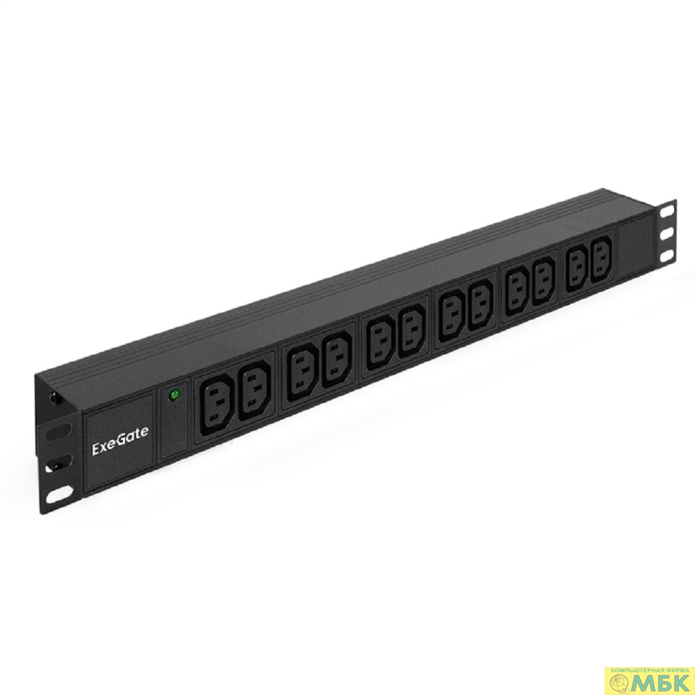 Exegate EX280865RUS Блок розеток ExeGate ServerPro PDU-19H007 Al-12C13-C20, 19",1U,алюм, 12 IEC 320 C13, С20