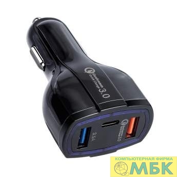 ORIENT QC-12V3B Автомобильное зарядное устройство с функцией быстрой зарядки, поддержка Quick Charge 3.0, 2xUSB-A + 1xUSB Type-C: QC выход - 5В,3.0A/ 9В,1.67А/ 12В,1.25А; 2,3 выходы - 5В,3.5А, цв