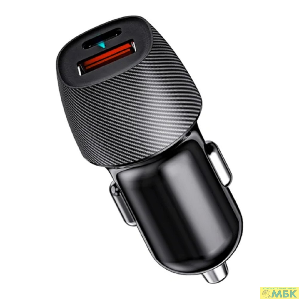 Rexant (16-0241) Автомобильное зарядное устройство c двумя портами (USB-A QC 3.0 + USB-C PD) со световой индикацией, 20Вт, черное