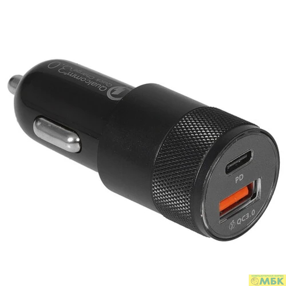 Cablexpert Автомобильное зарядное устройство 38Вт, 3А, QC3.0/PD, 1xUSB, 1xType-C, черный, пакет (MP3A-UC-CAR24)