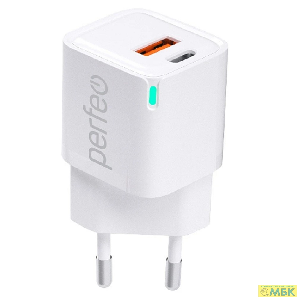PERFEO Сетевое зарядное устройство с двумя разъемами USB-A+TYPE-C, GaN, 20W, белый (I4652)
