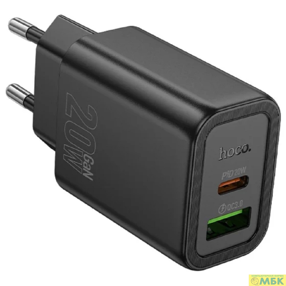 HOCO Зарядное устройство Hoco 20Вт, 3А, QC3.0/PD, 1xUSB, 1xType-C, N61, черный, коробка
