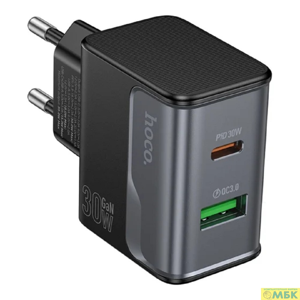 HOCO Зарядное устройство Hoco 30Вт GaN, 3А, QC3.0/PD, 1xUSB, 1xType-C, CS23A, черный, коробка