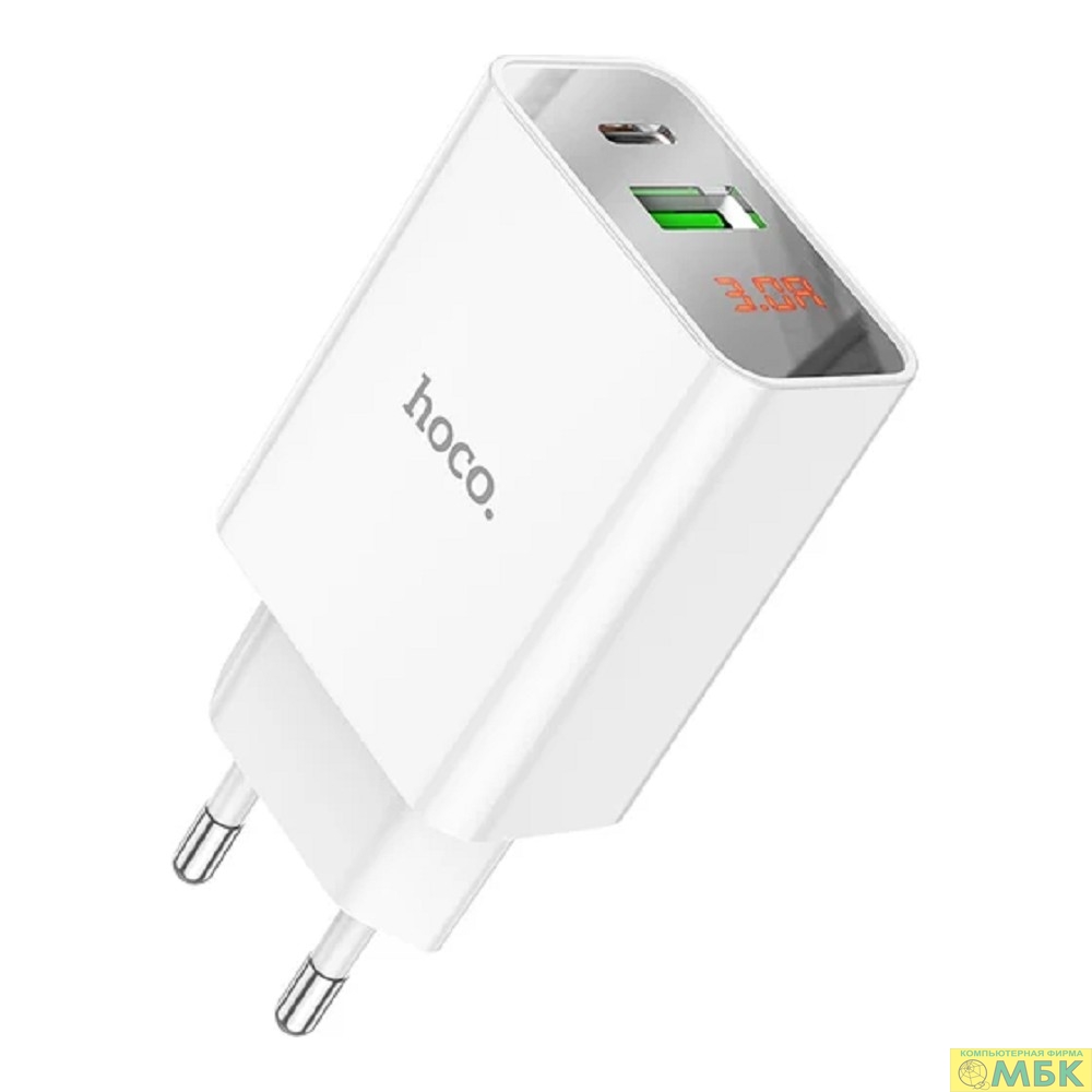 HOCO Зарядное устройство с дисплеем Hoco 18Вт, 3А, QC3.0/PD, 1xUSB, 1XType-C, C100A, белый, коробка