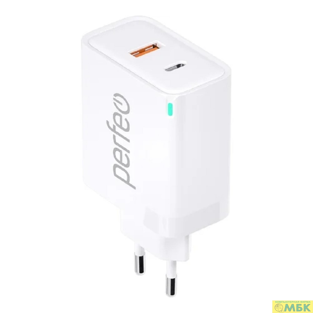 PERFEO Сетевое зарядное устройство с двумя разъемами USB-A+TYPE-C, GaN, 30W, белый (I4653)