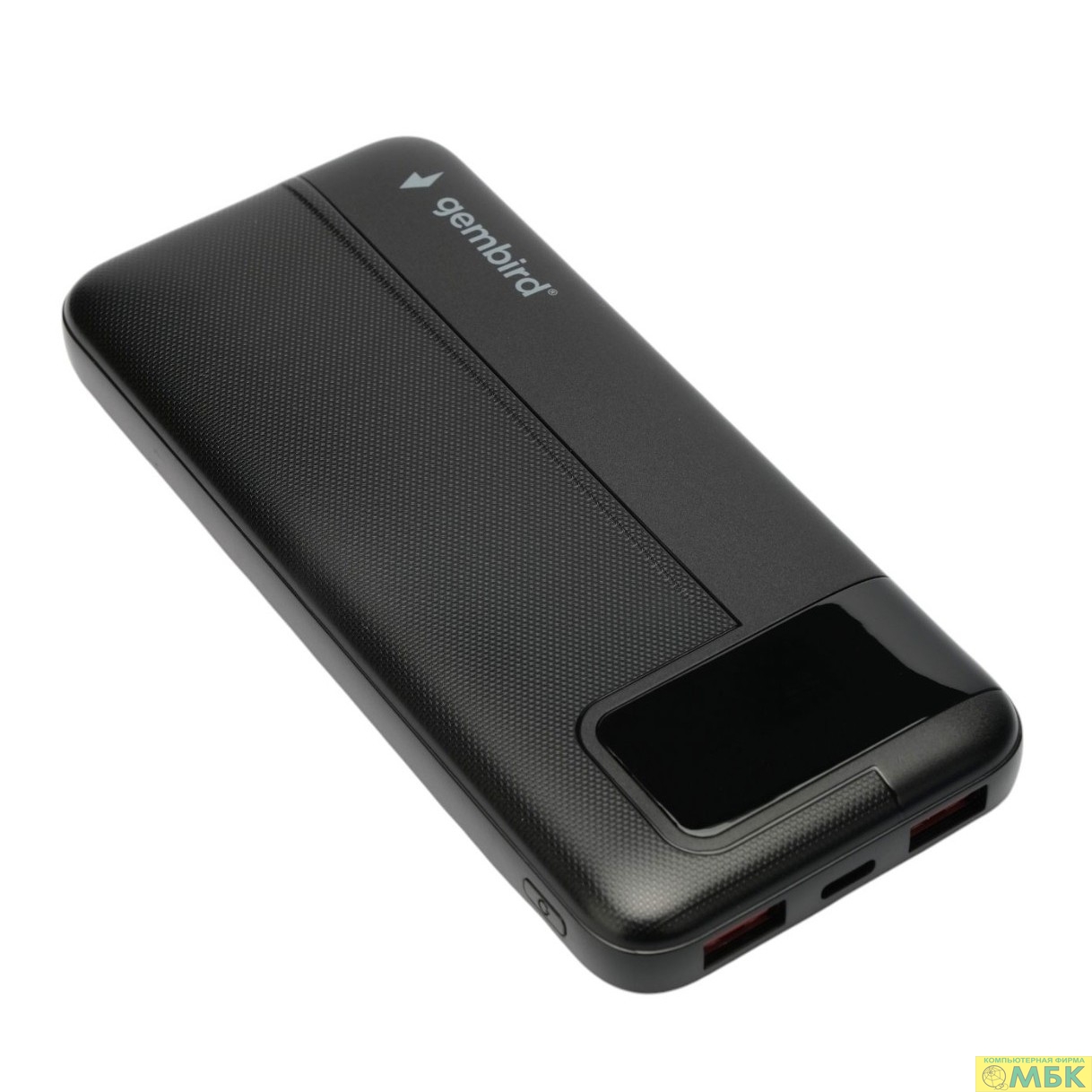 Gembird Портативный аккумулятор, 10000мАч, QC/PD, дисплей, черный (GPB-10Q)