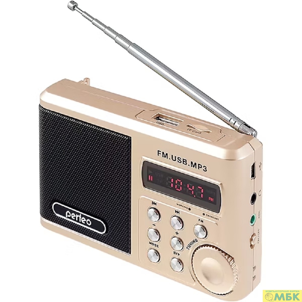 Perfeo мини-аудио Sound Ranger, УКВ+ FM, MP3 (USB/TF), USB-audio, BL-5C 1000mAh, шамп.золот (SV922AU) [PF_3185]