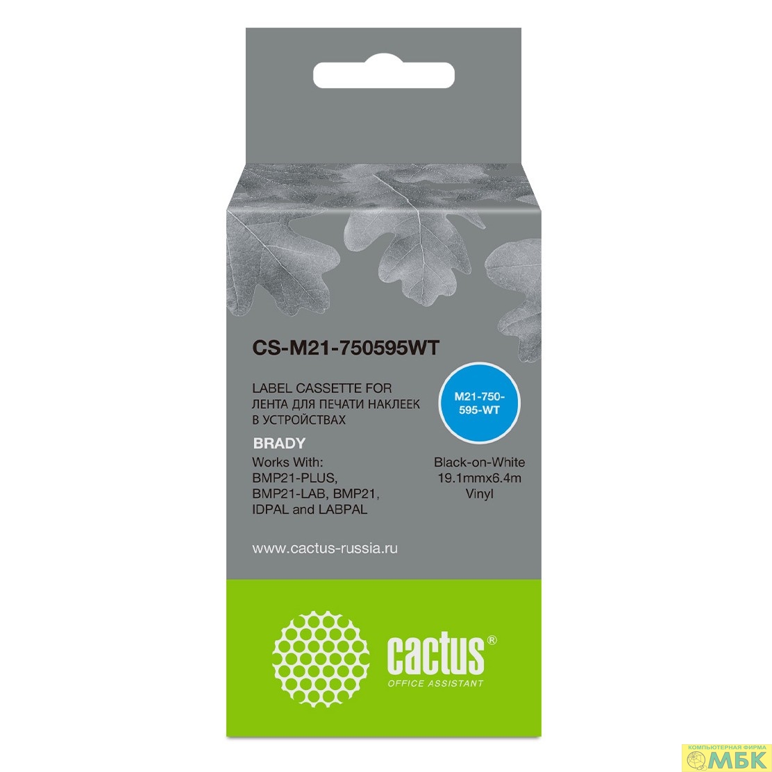 Картридж ленточный Cactus CS-M21-750595WT черный для Brady BMP21-PLUS, BMP21-LAB