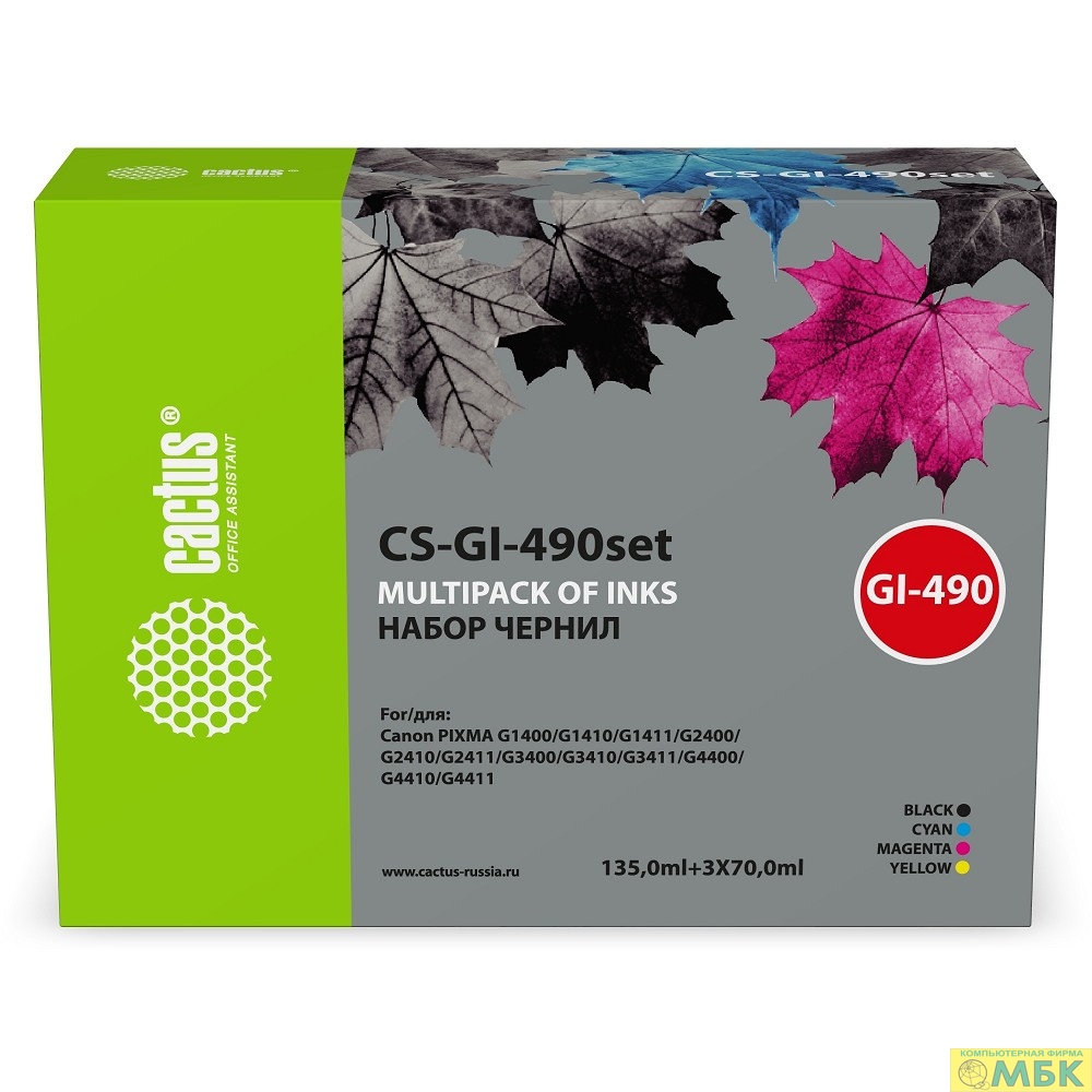 Чернила Cactus CS-GI-490set GI-490 голубой/пурпурный/желтый/черный набор 3x70ml для Canon PIXMA G140