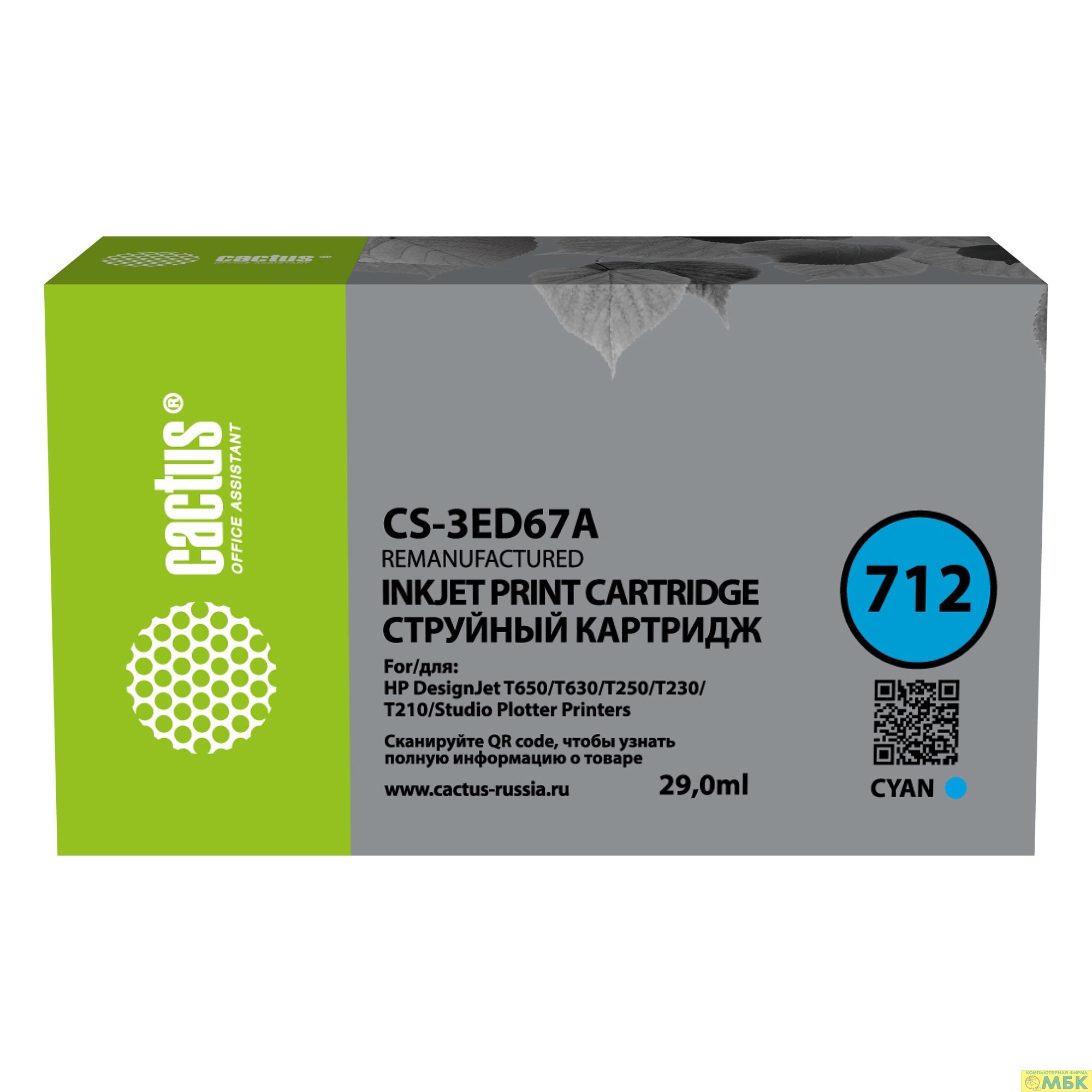 Картридж струйный Cactus CS-3ED67A 712 голубой (29мл) для HP DJ T230/630