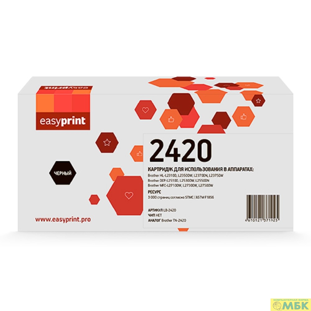 2420 Картридж EasyPrint LB-2420 для Brother HL-L2310/L2350/L2370/DCP-L2510/L2530/MFC-L2710/L2730/L2750 (3000 стр.) с чипом