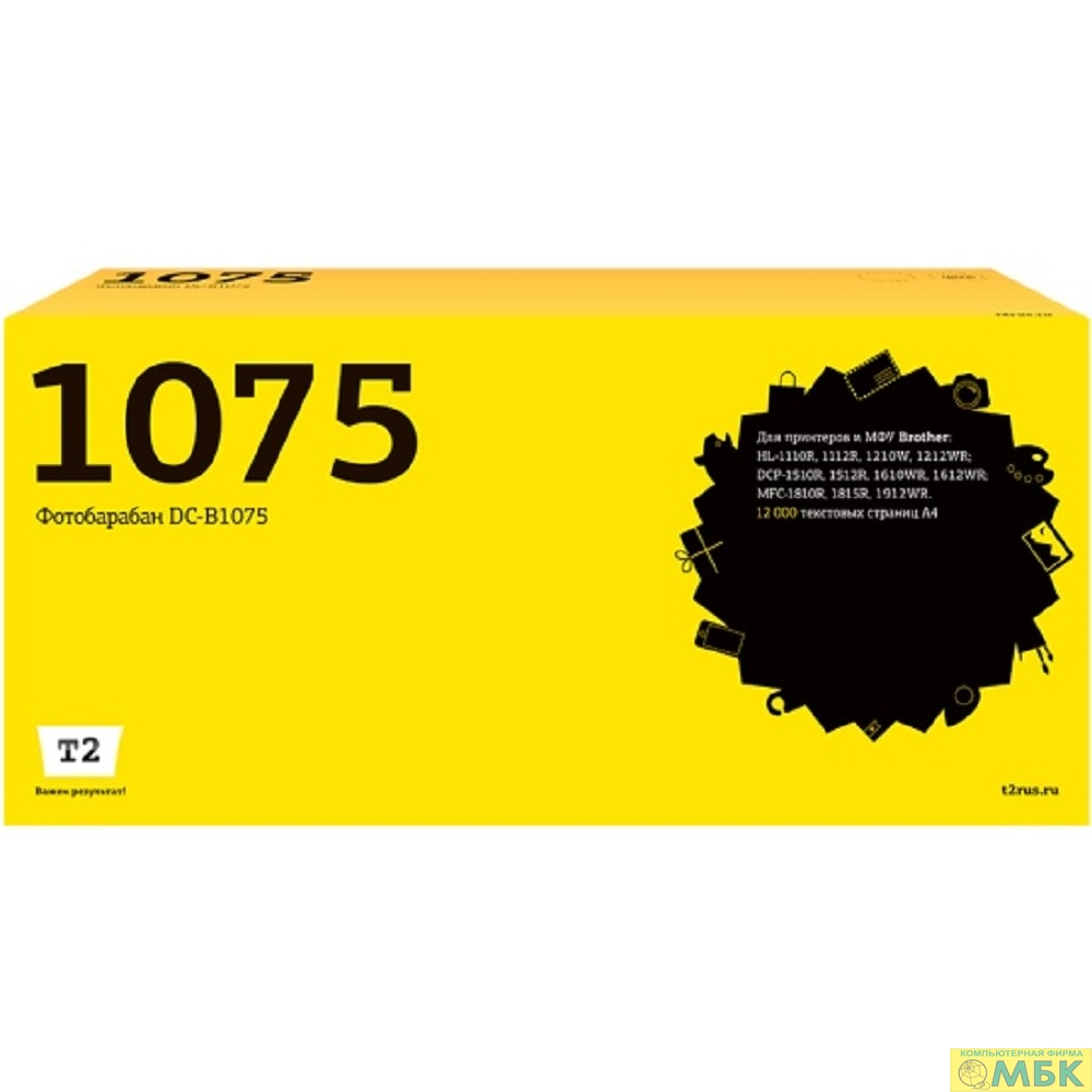 T2 DR-1075 Фотобарабан (DC-B1075) для Brother HL-1110R/1210W/DCP-1510R/1610WR/MFC-1810R (12000 стр.)