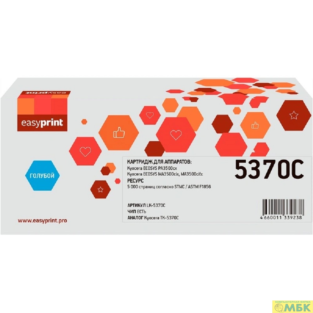 Тонер-картридж EasyPrint LK-5370C для Kyocera ECOSYS PA3500cx/MA3500cix/MA3500cifx (5000 стр.) голубой, с чипом