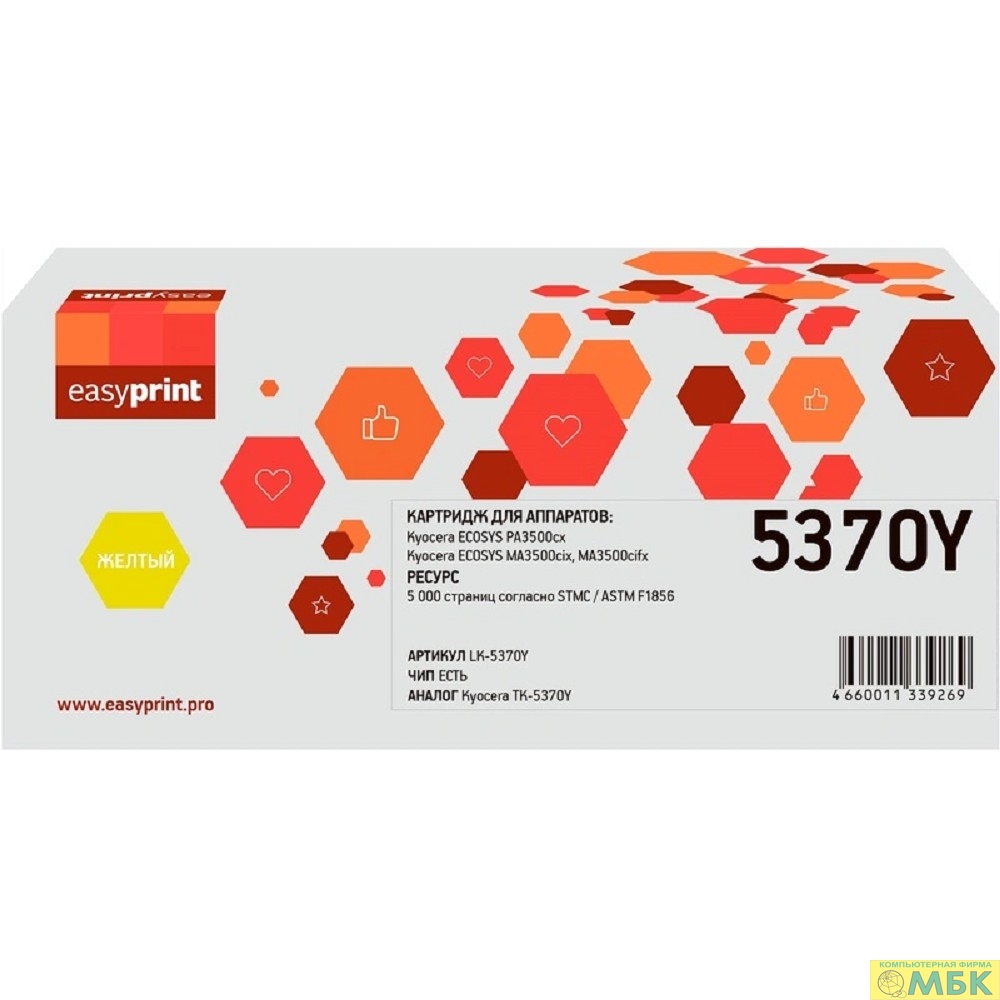 Тонер-картридж EasyPrint LK-5370Y для Kyocera ECOSYS PA3500cx/MA3500cix/MA3500cifx (5000 стр.) желтый, с чипом
