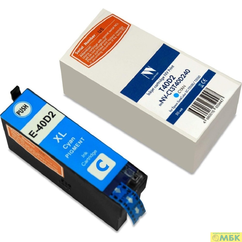 Струйный картридж NV Print T40D2 (NV-C13T40D240) Cyan для Epson SureColor SC-T5100/T3100 (50 мл)
