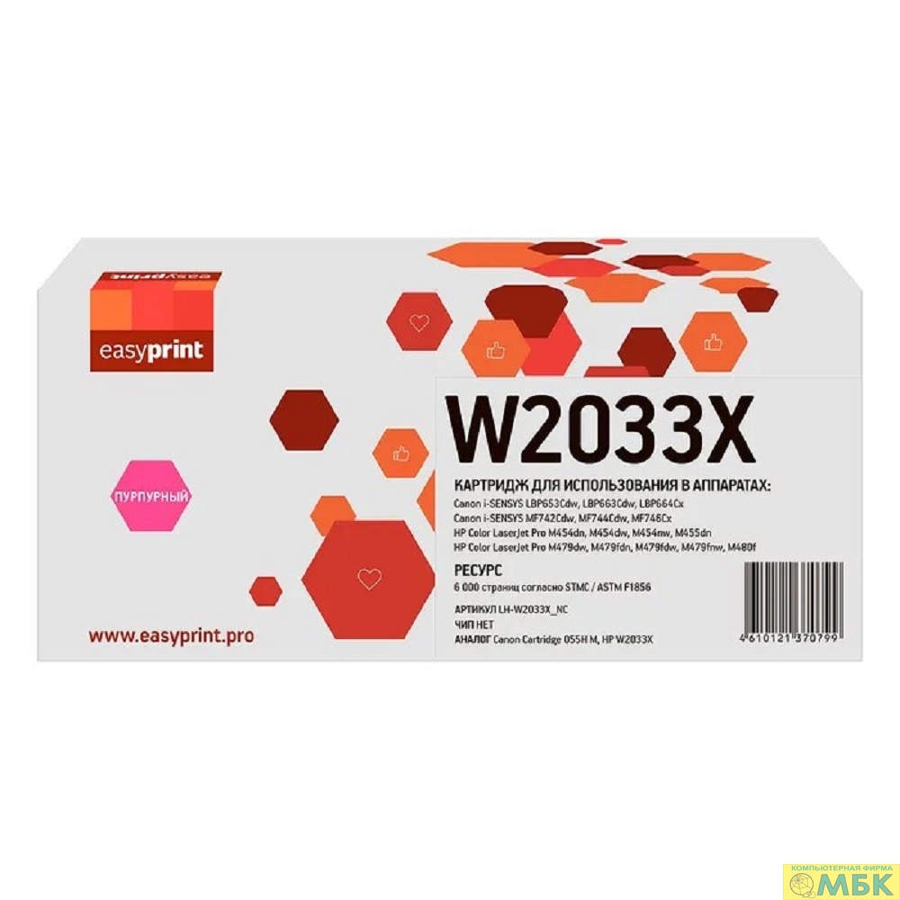 Easyprint W2033X Тонер-картридж (LH-W2033X_NC) для HP CLJ Pro M454/455/M479/480/Canon LBP663/664/MF742/744/746 (6000 стр.) пурпурный, БЕЗ ЧИПА