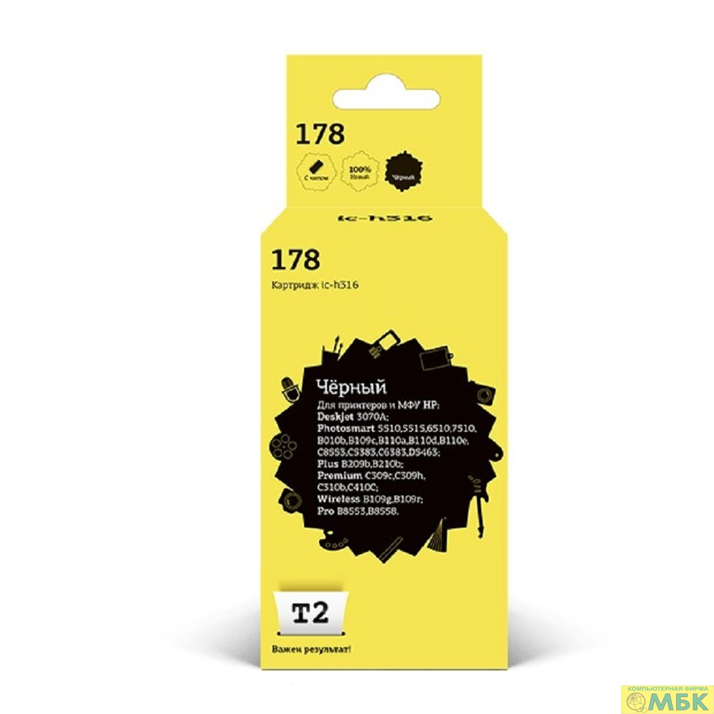 T2 CB316HE/№178 Картридж №178 для HP Deskjet 3070A/Photosmart 5510/6510/7510/B110/C8583, черный, С ЧИПОМ, 250 стр.