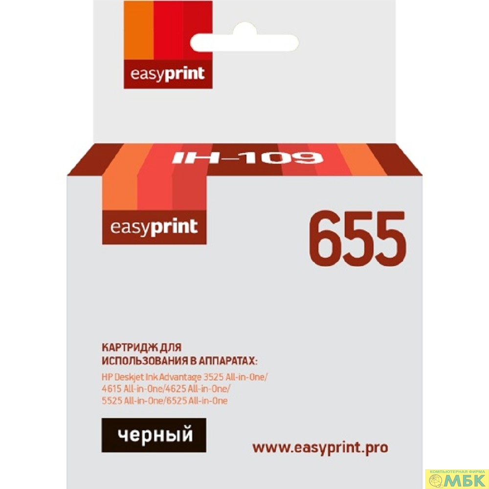 Easyprint CZ109AE Картридж (IH-109) № 655, для HP DeskJet IA 3525/4615/5525/6525, черный, 550 стр. с чипом