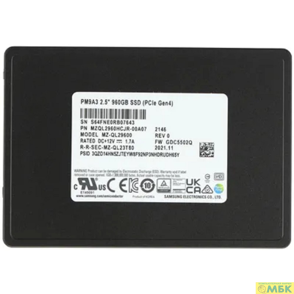 Samsung SSD 960Gb PM9A3 NVMe/PCIE 3.1 x4, MZQL2960HCJR-00A07