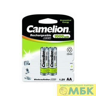 Camelion AA-1000mAh Ni-Cd BL-2 (NC-AA1000BP2, аккумулятор,1.2В) (2 шт. в уп-ке)