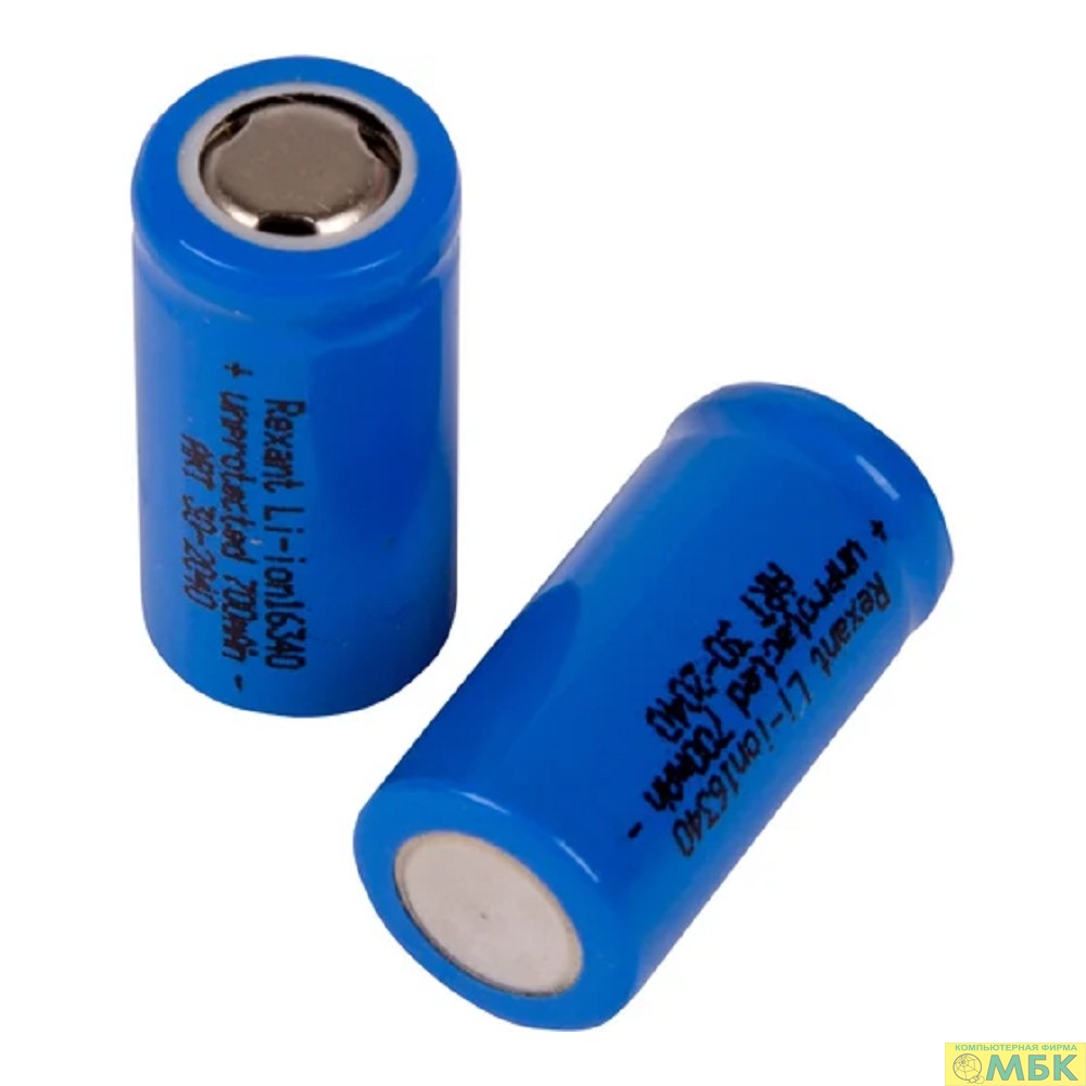 Rexant (30-2040) Аккумулятор Li-ion 16340, 3,7В, 700мАч, без платы защиты, плоский контакт, 10 шт, коробка