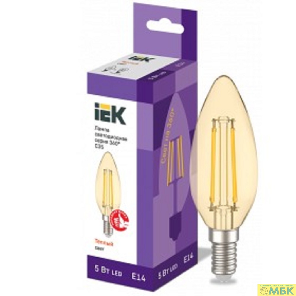 Iek LLF-C35-5-230-30-E14-CLG Лампа LED C35 свеча золото 5Вт 230В 2700К E14 серия 360°