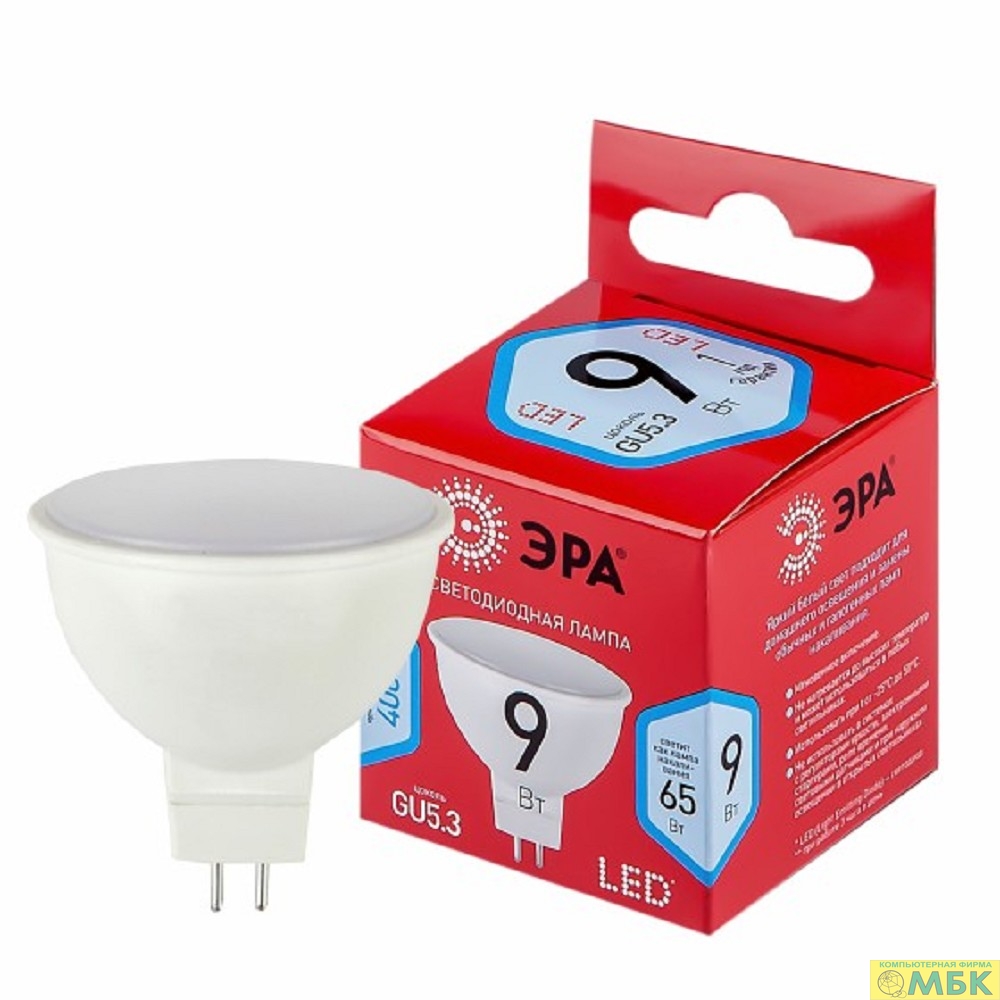ЭРА Б0050199 Лампочка светодиодная RED LINE LED MR16-9W-840-GU5.3 R GU5.3 9 Вт софит нейтральный белый свет