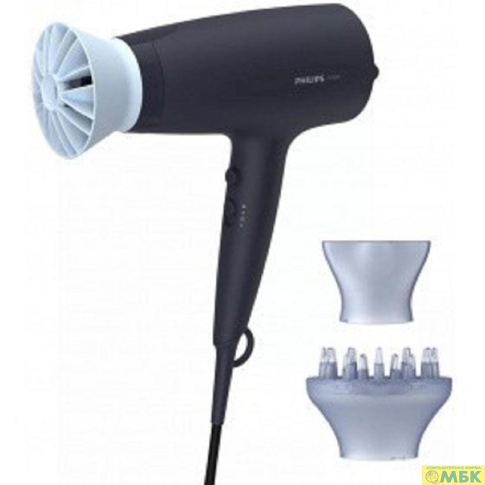 PHILIPS BHD360/20 Фен,2100 Вт, 6 режимов, ионизация, ThermoProtect, концентратор, диффузор, шнур 1,8 м. Цвет: синий.