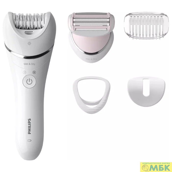 PHILIPS BRE710/00 Эпилятор,2 скорости, широкая головка, Wet&Dry, беспроводной, opti light, 4 аксессуара