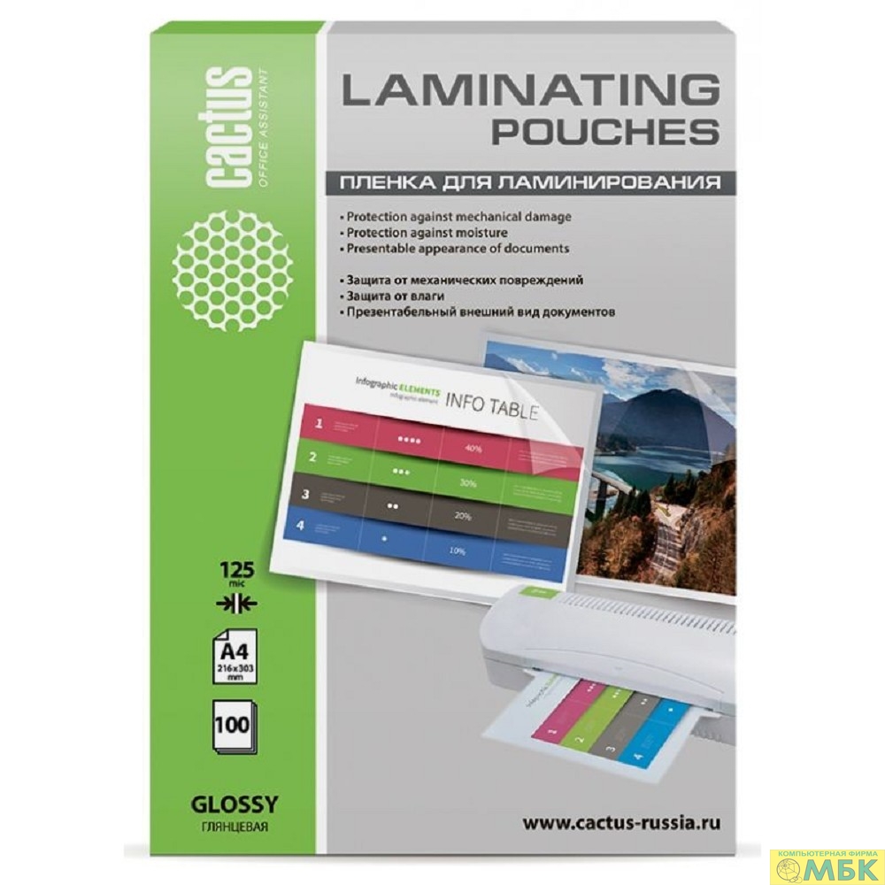 Cactus Пленка для ламинирования 125мкм A4 (100шт) глянцевая 216 x 303мм [CS-LPGA4125100]
