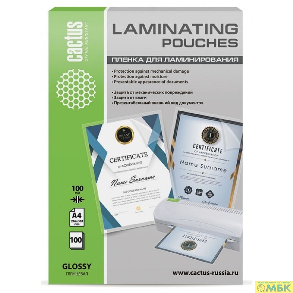 Cactus Пленка для ламинирования 100мкм A4 (100шт) глянцевая 216 x 303мм (CS-LPGA4100100)