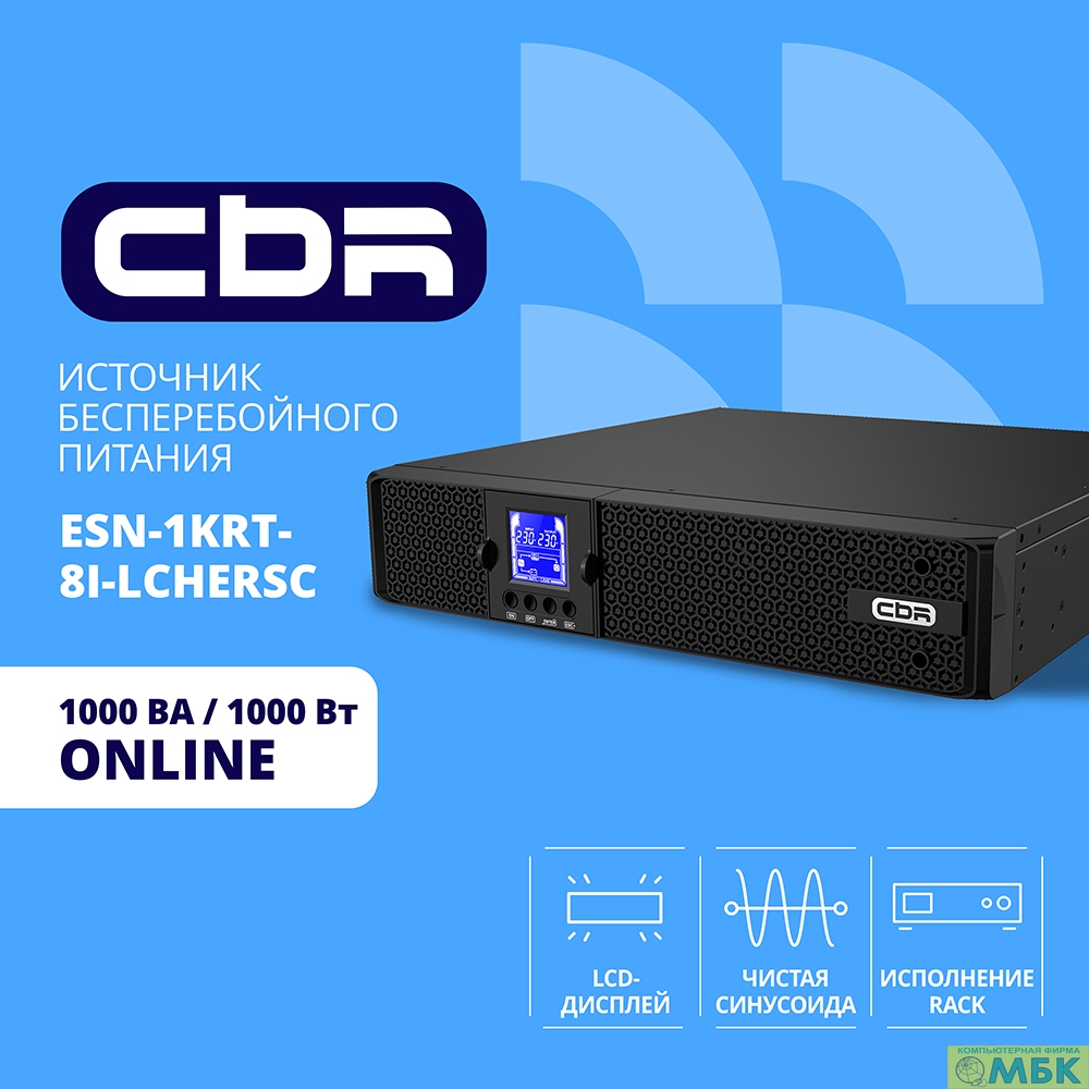 ИБП CBR ESSENCE ESN-1000 RT [Online 1000 VA / 1000 W, Rack/Tower, 8 x C13, LCD, HID-USB, RS232, EPO, SNMP slot] (ESN-1KRT-8I-LCHERSC)