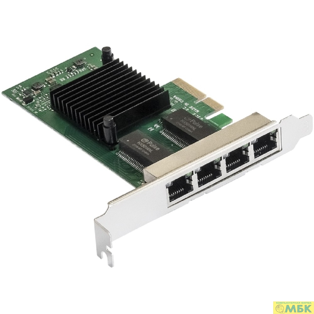 Exegate EX293453RUS Сетевой адаптер ExeGate EXE-BCM5719 (PCI-E x4 v2.0, порты 4xRJ45, 10/100/1000Mbps, Gigabit Chipset Broadcom BCM5719)