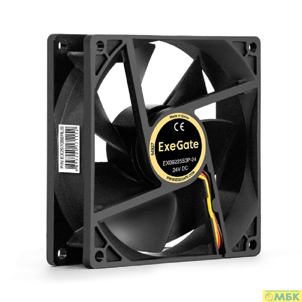 Exegate EX297086RUS Вентилятор 24В DC ExeGate EX09225S3P-24 (92x92x25 мм, Sleeve bearing (подшипник скольжения), 3pin, 2800RMP, 34dBA)