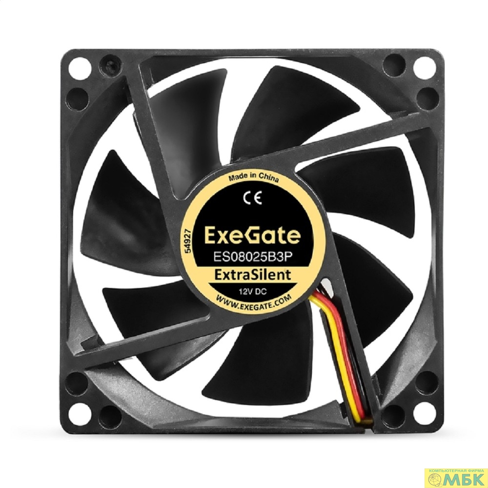 Exegate EX297047RUS Вентилятор 12В DC ExeGate ExtraSilent ES08025B3P (80x80x25 мм, 2-Ball (двойной шарикоподшипник), 3pin, 2000RPM, 19dBA)